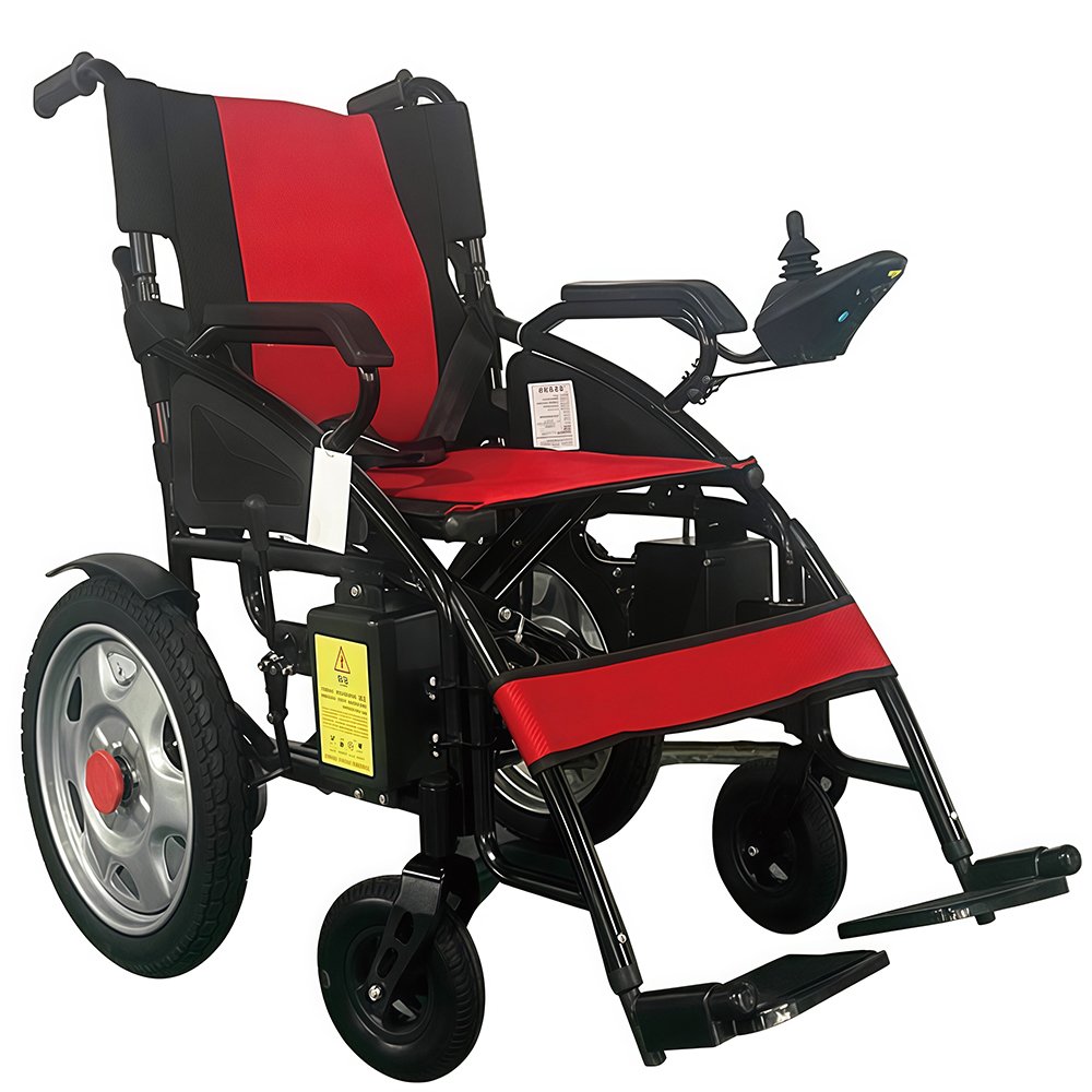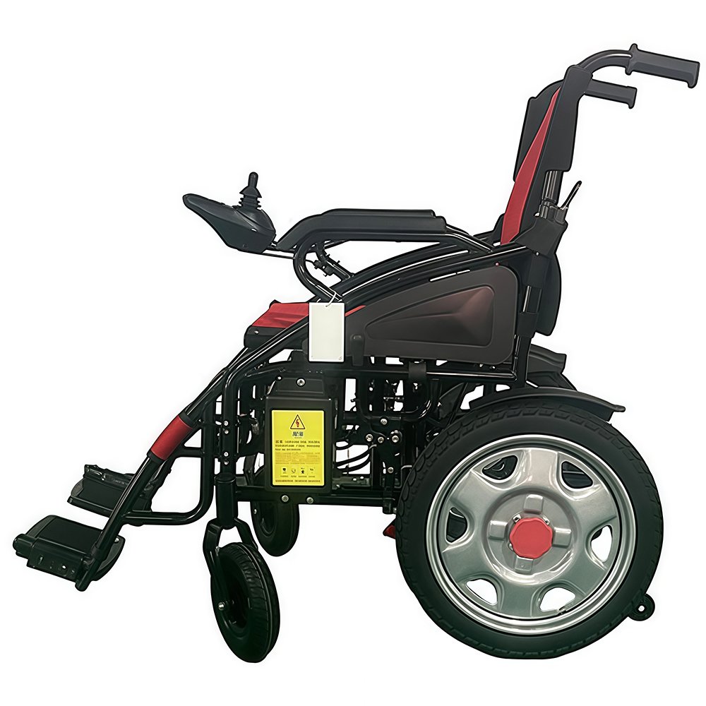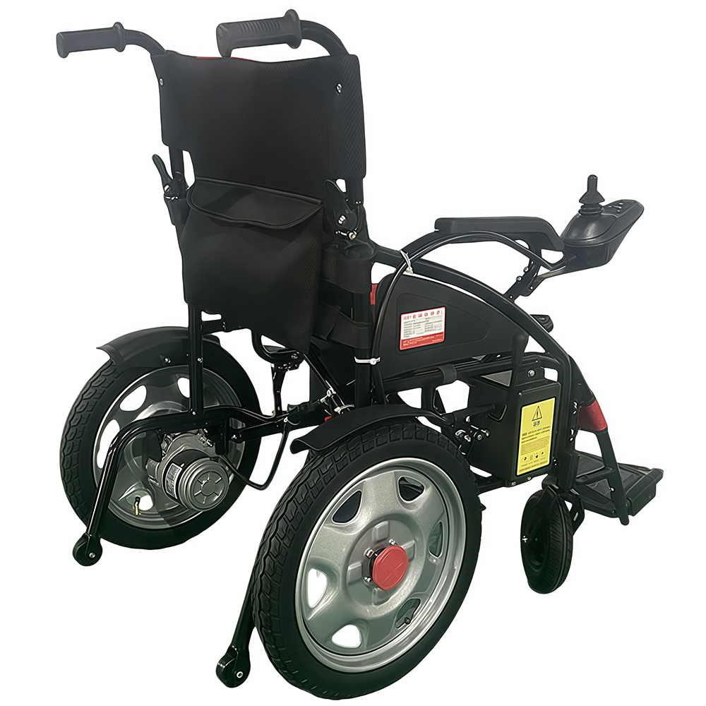 NL190301EW-6018A Carbon Steel Electric Wheelchair: Carbon steel frame, flame-retardant breathable cushion. Double shock absorption, rear-throwing armrests. Dual 250W motors, 15km range, foldable backrest. Nylon foot pedals—safe for home use.