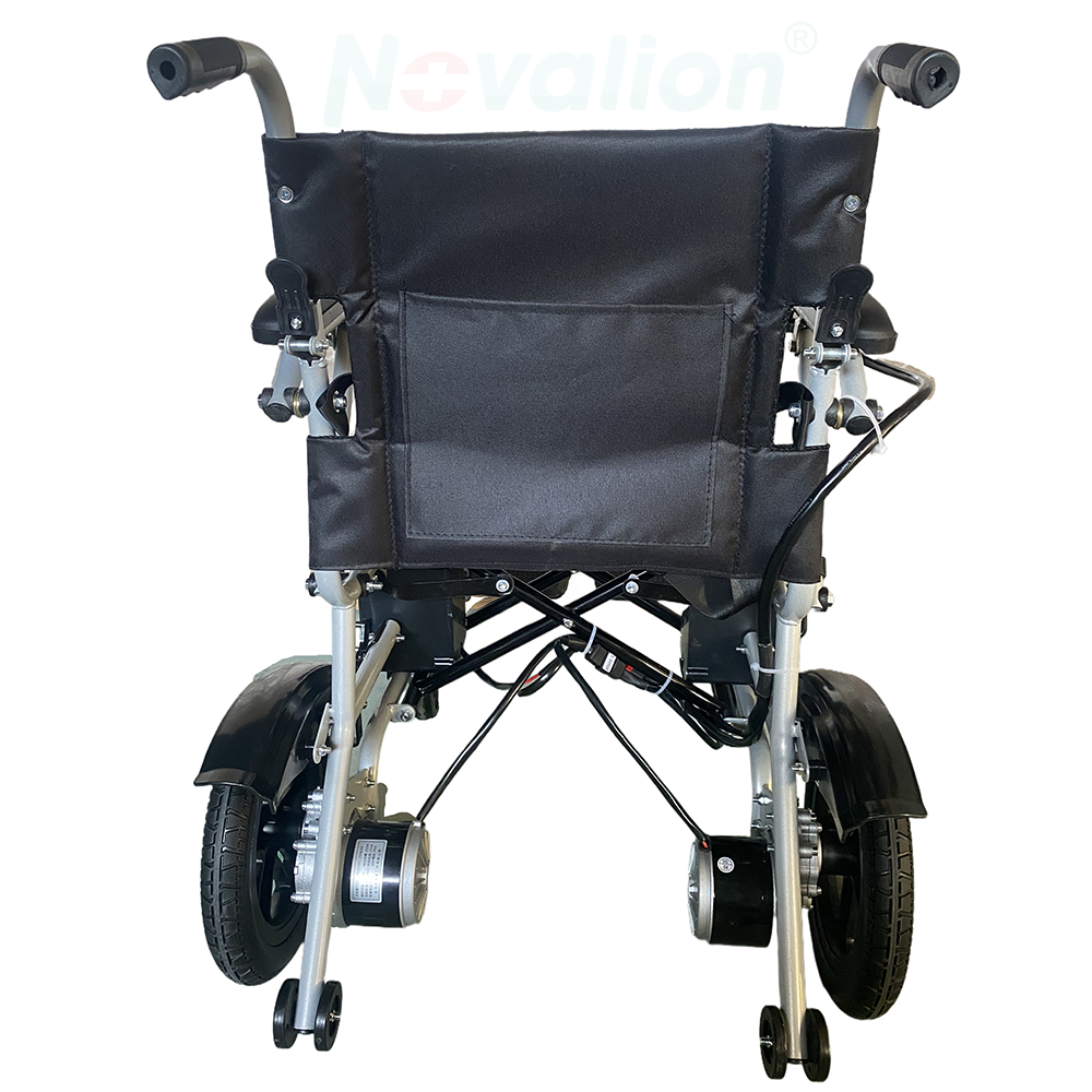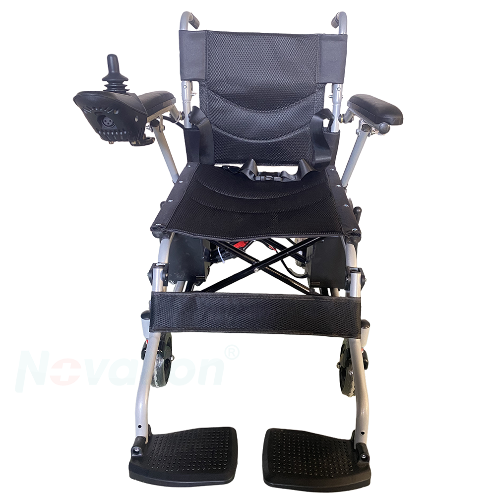 NL190301EW-01B Aluminium Alloy Electric Wheelchair: High-quality aluminum alloy frame (baking paint). Breathable sponge-oxford cushion, solid tires. Dual 500W motors, 360° waterproof rocker, rear anti-tilt wheels. Front shock absorption, foldable—portable for travel.